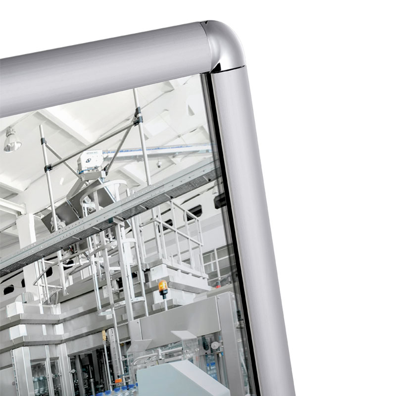 Lustra płaskie nierozpryskowe: lustra VIALUX® o grubości 5 mm posiadają specjalną powłokę odporną na czyszczenie. Są proponowane bez ramy lub z ramą wykonaną z anodowanego aluminium o grubości 13 mm.